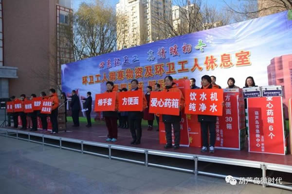 葫蘆島市總工會(huì)黨組副書(shū)記、常務(wù)副主席吉銀霞在儀式上講話說(shuō),在全市上下深入學(xué)習(xí)貫徹黨的十九大精神和凝心聚力決勝全面小康社會(huì)之際。進(jìn)一步倡導(dǎo)形成全社會(huì)理解、尊重、關(guān)愛(ài)環(huán)衛(wèi)工人的良好氛圍,是建設(shè)和諧城市的重要內(nèi)容之一。向社會(huì)各界發(fā)出了《關(guān)愛(ài)環(huán)衛(wèi)工人,共建美麗濱城》倡議書(shū),希望幫助環(huán)衛(wèi)工人解決工作和生活中的現(xiàn)實(shí)問(wèn)題,社會(huì)各界能伸出溫暖之手,為環(huán)衛(wèi)工人做一些力所能及的事,把更多關(guān)心關(guān)愛(ài)送給他們。
