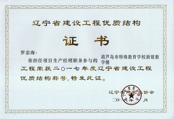遼綏四榮獲“遼寧省建筑業(yè)優(yōu)秀企業(yè)”、“ 遼寧省工程建設(shè)質(zhì)量管理優(yōu)秀企業(yè)”等榮譽