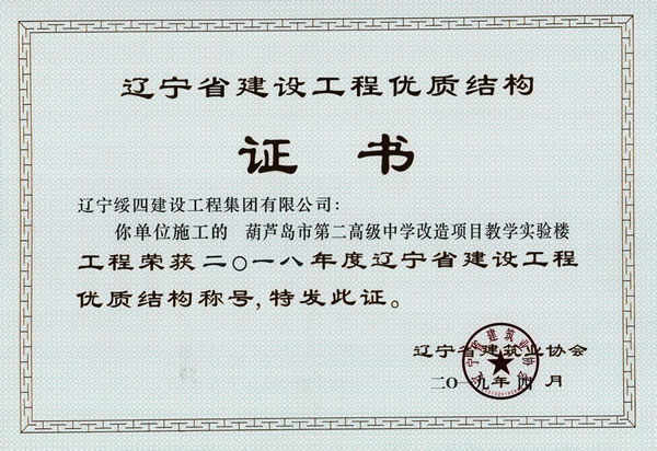 由企業(yè)自愿申報(bào),有關(guān)單位擇優(yōu)推薦,遼寧省建筑業(yè)協(xié)會(huì)工程質(zhì)量管理分會(huì)組織專家組對(duì)工程復(fù)查并經(jīng)省建設(shè)工程質(zhì)量評(píng)審委員會(huì)審定,以及社會(huì)公示等一系列評(píng)價(jià)認(rèn)定。由我公司承建的“葫蘆島三和恬園13#樓”、“葫蘆島市第二高級(jí)中學(xué)改造項(xiàng)目教學(xué)實(shí)驗(yàn)樓”工程被評(píng)為“2018年度遼寧省建設(shè)工程優(yōu)質(zhì)結(jié)構(gòu)”工程。
