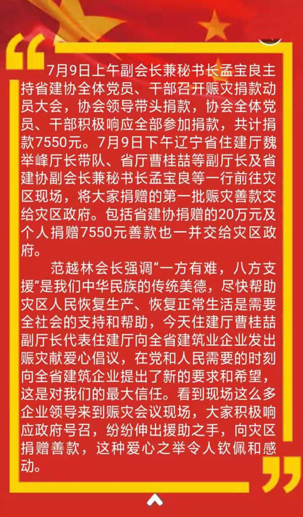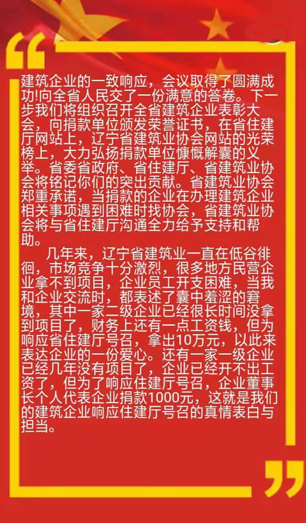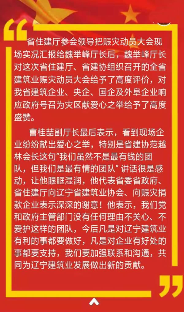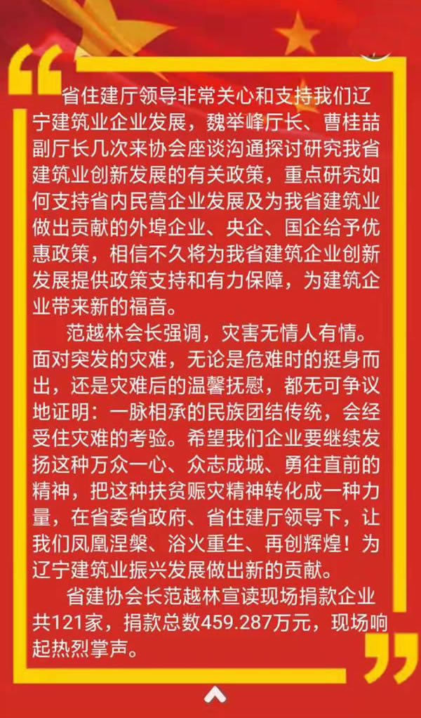 全省建筑業(yè)企業(yè)賑災(zāi)動(dòng)員大會(huì)在沈陽隆重召開