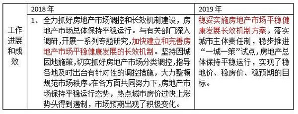 對于2019年的工作進(jìn)展和成效方面,住建部工作會議指出,穩(wěn)妥實施房地產(chǎn)市場平穩(wěn)健康發(fā)展長效機制方案,落實城市主體責(zé)任制,穩(wěn)步推進(jìn)“一城一策”試點,房地產(chǎn)總體保持平穩(wěn)運行,實現(xiàn)了穩(wěn)地價、穩(wěn)房價、穩(wěn)預(yù)期的目標(biāo)。