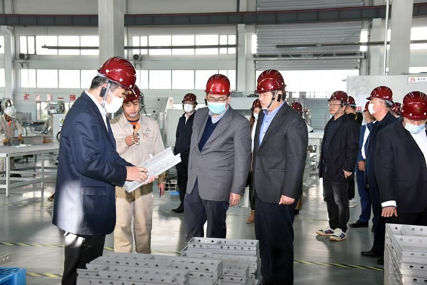 省住建廳領(lǐng)導(dǎo)、省建協(xié)領(lǐng)導(dǎo)及與會(huì)代表參觀鋁模板生產(chǎn)線