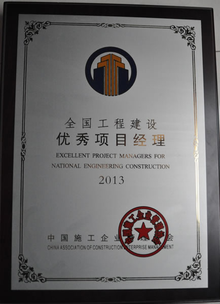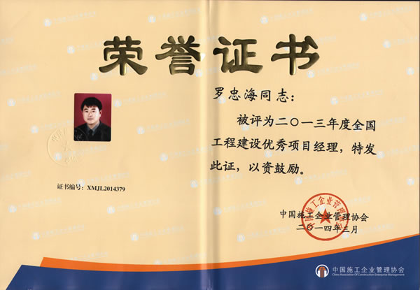 | 羅忠海同志被評為2013年度全國工程建設優(yōu)秀項目經理 |