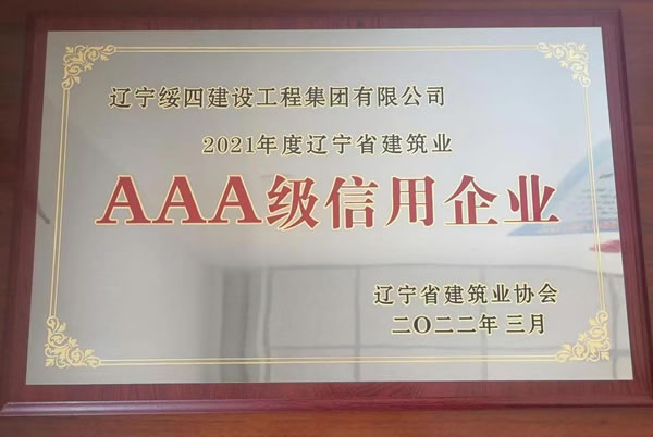 2022年3月,遼寧綏四建工集團(tuán)有限公司被遼寧省建筑業(yè)協(xié)會(huì)評為2021年度遼寧省建筑業(yè)AAA級信用企業(yè)。