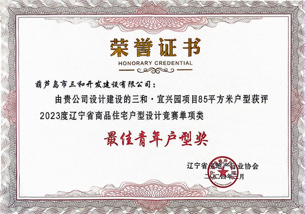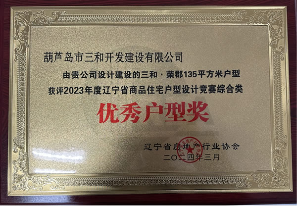 本次競賽以“好房子服務(wù)美好生活”為主題,活動一經(jīng)發(fā)布,我單位市場開發(fā)副總凌旭作為主要設(shè)計人,聯(lián)合其它設(shè)計人員積極申報戶型設(shè)計方案。經(jīng)過專家評審,我單位獲得1項(xiàng)綜合類獎、2項(xiàng)單項(xiàng)類獎。其中,應(yīng)用于三和榮郡居住小區(qū)二期工程的135平方米戶型,榮獲綜合類“優(yōu)秀戶型獎”;應(yīng)用于三和宜興園小區(qū)工程的85平方米戶型,榮獲單項(xiàng)類“最佳青年戶型獎”;應(yīng)用于三和恬園小區(qū)二期工程的184平方米戶型,榮獲單項(xiàng)類“最佳適老戶型獎”。