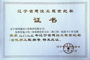 三和榮郡居住小區(qū)二期工程一標(biāo)段10#住宅樓 榮獲2023年遼寧省建設(shè)工程世紀(jì)杯(省優(yōu)質(zhì)工程)稱號(hào)
