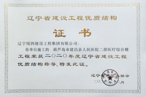 “葫蘆島市建昌縣人民醫(yī)院二部醫(yī)療綜合樓”榮獲2020年度遼寧省建設(shè)工程優(yōu)質(zhì)結(jié)構(gòu)稱號