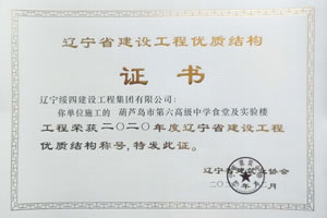 “葫蘆島市第六高級中學食堂及實驗樓”榮獲2020年度遼寧省建設(shè)工程優(yōu)質(zhì)結(jié)構(gòu)稱號