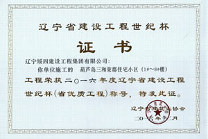 “葫蘆島三和榮郡住宅小區(qū)1-8#樓”榮獲2016年度遼寧省建設(shè)工程世紀杯稱號