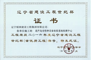 “葫蘆島市特種設(shè)備檢驗基地檢測中心”榮獲2016年度遼寧省建設(shè)工程世紀杯稱號