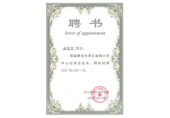 藥王廟鎮(zhèn)小學中心校榮譽校長