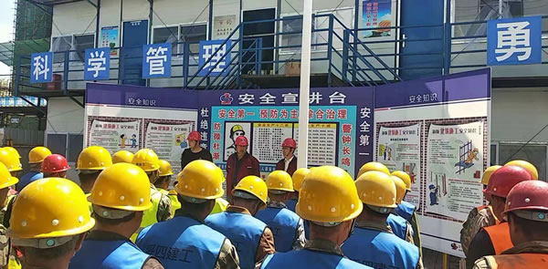 會上,集團(tuán)安技部于海從人的不安全行為、物的不安全狀態(tài)、現(xiàn)場作業(yè)環(huán)境等方面進(jìn)行了公司級安全教育。現(xiàn)場管理人員劉政、彭麗群分別進(jìn)行了項目級安全教育,并要求班組長每天班前進(jìn)行班組級安全教育。