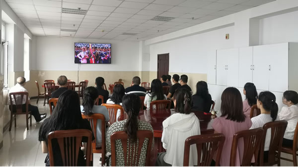 當天上午,集團事長趙寶貴及總部員工們早早地聚集在會議室,懷著崇敬和激動的心情等待閱兵式的開始。9時許,閱兵儀式正式開始,大家整齊就座,認真觀看每一個環(huán)節(jié),看著整齊劃一的方隊、先進的武器裝備依次通過天安門廣場,員工們的臉上洋溢著自豪與驕傲之情。